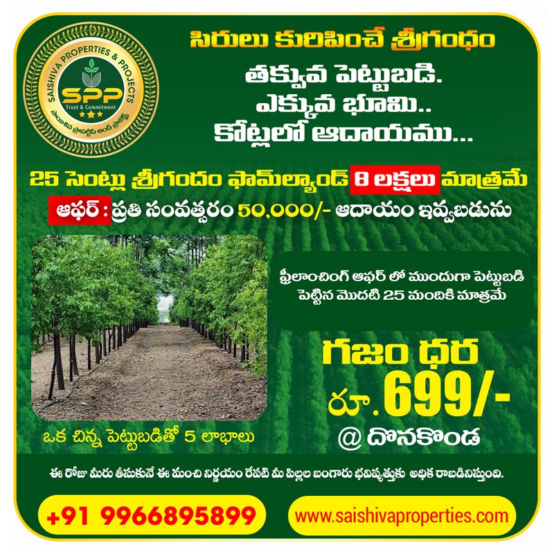 SAISHIVA PROPERTIES & PROJECTS's proximity to Guntur and Vijayawada developments makes it an attractive investment opportunity. The area is witnessing significant developments by the government of Andhra Pradesh, is just an hour away from the farmland. The sandalwood plantation in SAISHIVA PROPERTIES & PROJECTS offers investors a potential return of 1.5 crores to 1.8 crores upon harvesting. Sandalwood is known as the second most expensive wood in the world, with a price of INR 16,000 per kg for heartwood and INR 4500 for sapwood. SAISHIVA PROPERTIES & PROJECTS's business model has received a boost due to the ongoing trends of work-from-home, online studies, and the demand for retirement homes. The project also offers the option of renting out the farmhouse to the 4-star resort operator for guests, generating additional income for investors. Investing in real estate is a wise decision, but investing in a sustainable real estate project that also promotes nature conservation is a decision that aligns with the collective responsibility towards the environment. With its focus on sustainability and unique revenue-based farmhouse model, SAISHIVA PROPERTIES & PROJECTS is setting itself apart as a trailblazing farmland project in India.